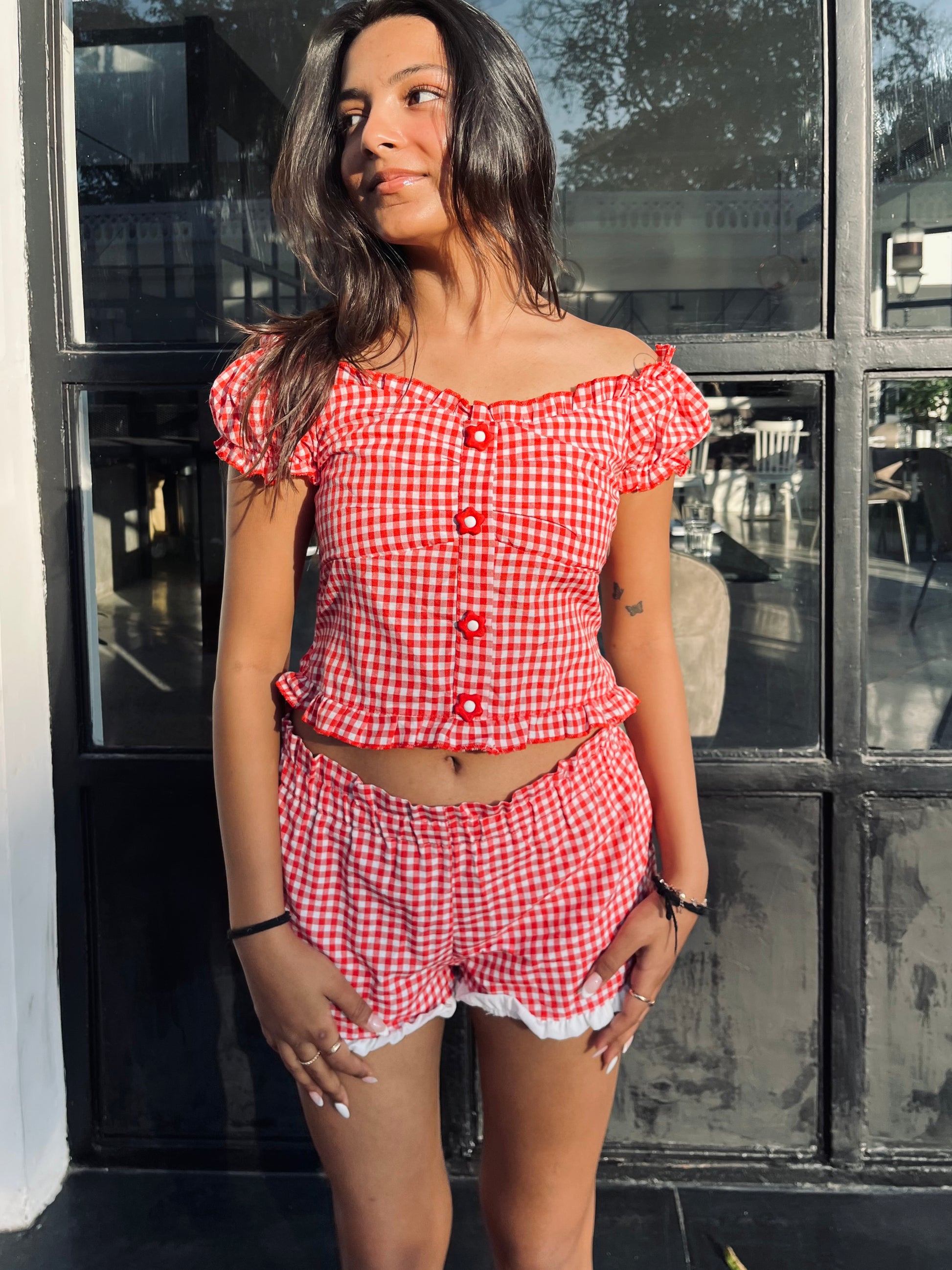 Our red gingham co-ord is made for slow mornings and sunny afternoons. Light, breathable, and effortless — it’s the kind of set you’ll keep reaching for when you just want to feel cute without putting in too much effort.