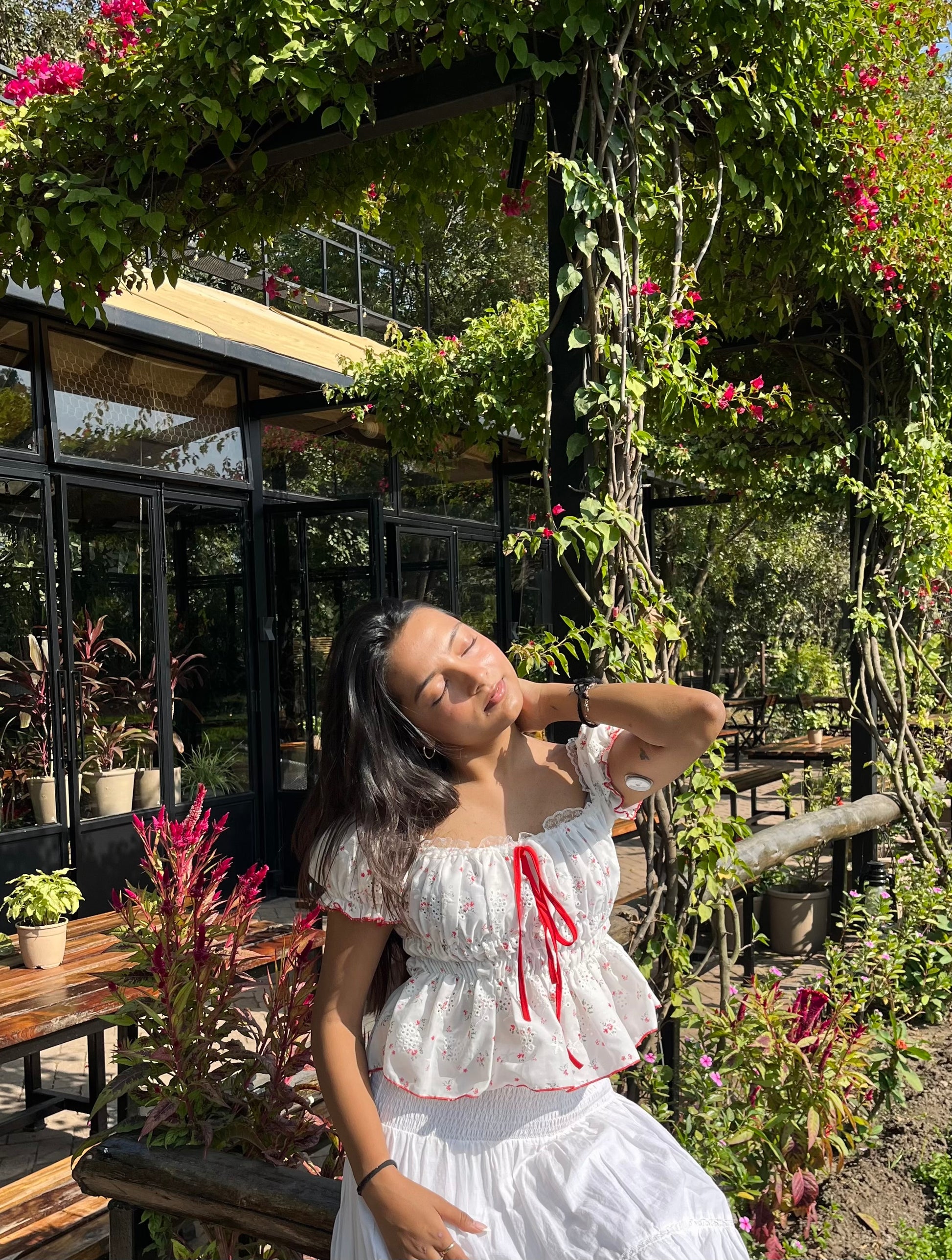 A soft, easy top that feels light and feminine without being extra. Comfortable, breathable, and perfect for warm days when you just want to look cute and feel relaxed. Works just as well for daytime plans, café hopping, or low-key evenings out.